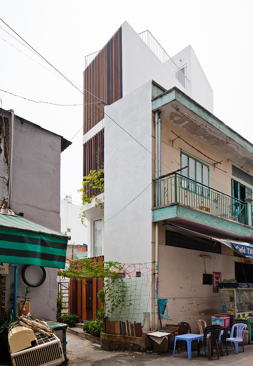 บ้านเล็กๆทรงตึกแถวหลังนี้ตั้งอยู่ในเมืองโฮจิมิน ประเทศเวียดนาม ซึ่งอยู่ในโซนที่เป็นซอยเปลี่ยว สกปรกและค่อนข้างอันตราย สถาปนิก MM++ได้ออกแบบบ้านทรงตึกแถวสูง 4 ชั้น แก้ปัญหาสภาพแวดล้อมโดยรอบอาคารได้อย่างสวยงามและน่าสนใจทีเดียว